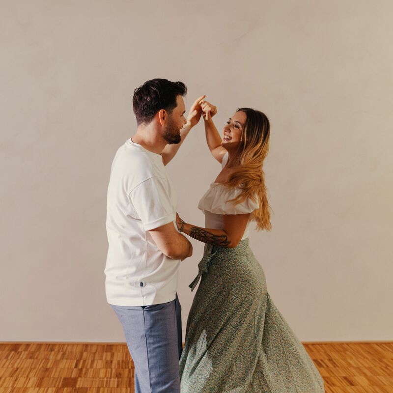 Entdecke in unseren Paartanzkursen das freie Zusammenspiel von Führen und Führen lassen sowie die Vielfalt des Tanzens. Lerne eigenständiges Erkennen, Verstehen und Kombinieren von Bewegungsabläufen. Auf unseren Übungsabenden und bei Bällen und Events in Ravensburg kannst du das Gelernte direkt aufs Parkett bringen. Bei Unsicherheiten zur Kurswahl helfen wir gerne weiter!